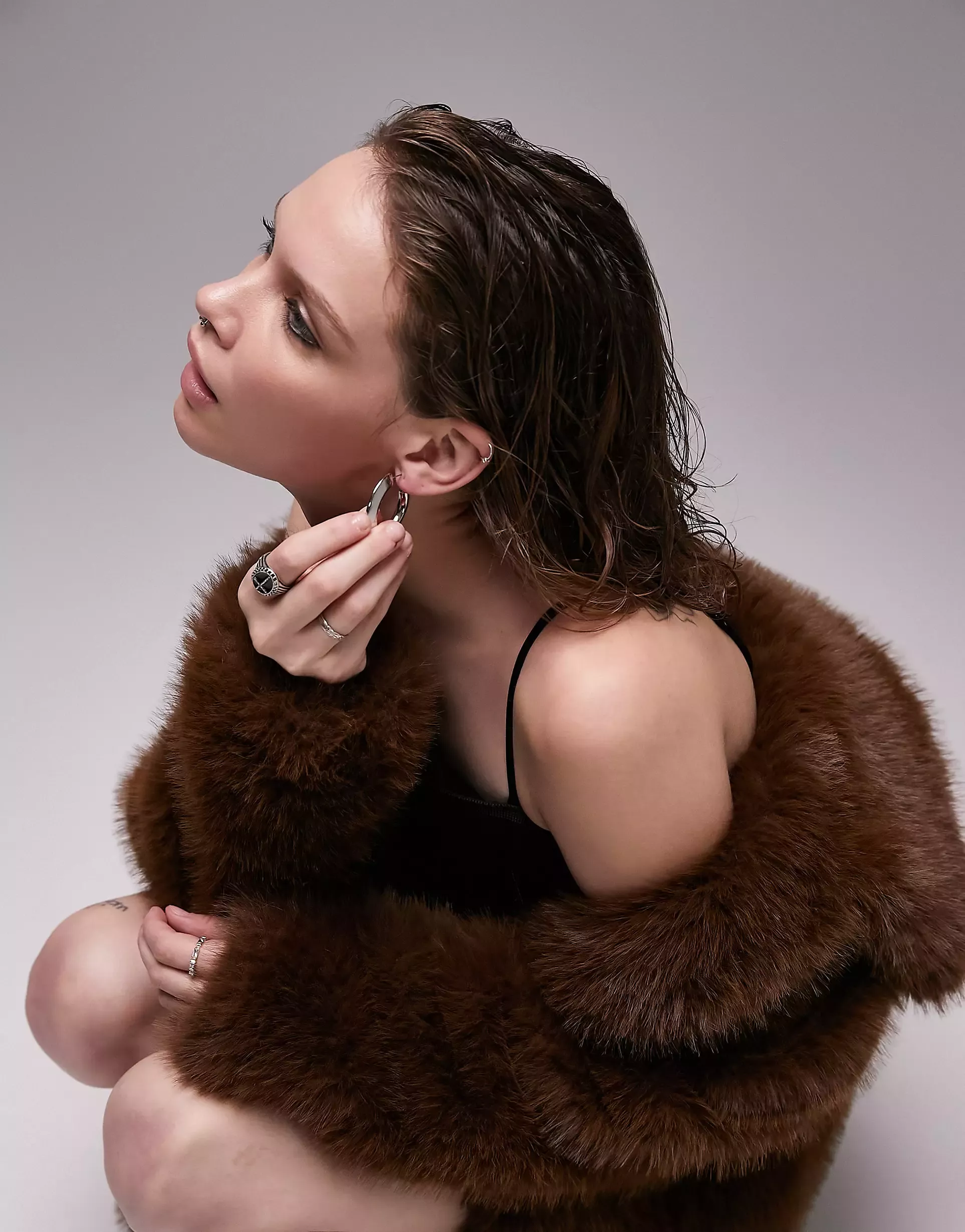 TOPSHOP Short Fur Coat in Natural Lyst Very well made.
