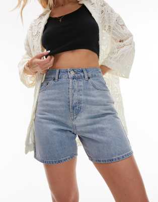TOPSHOP long line cargo denim short in mid blue Women s Fashion Very well made.