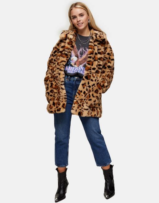 Topshop Petite faux fur checkerboard longline jacket in monochrome Very well made.
