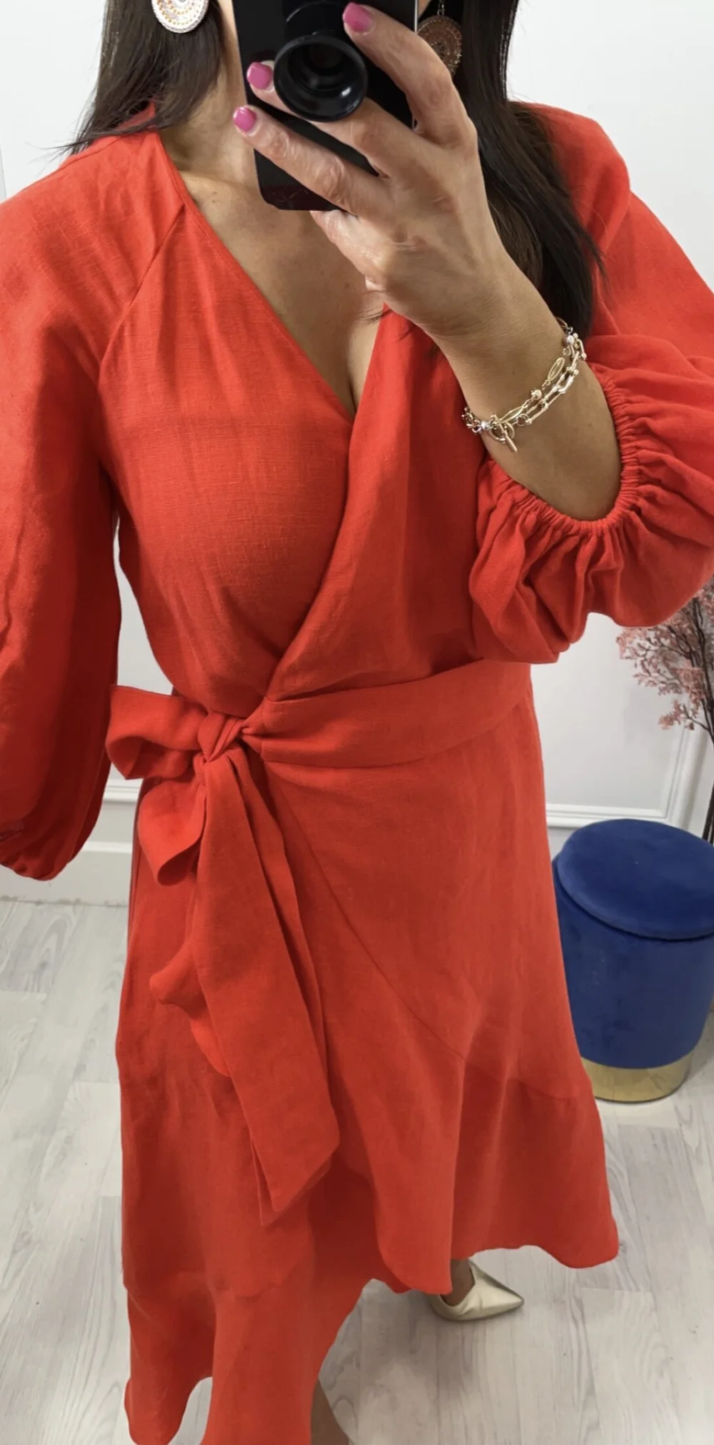 PAULA TOMATOE RED ORANGE WRAP DRESS Fusion Fashion Moycullen Very well made.