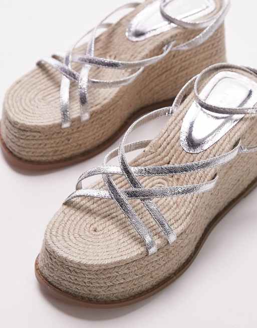 Topshop Jo strappy raffia platform sandals in silver Very well made.