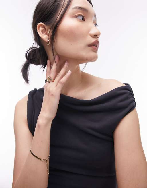 Topshop Black Twist Front Bardot Midi Dress Cocktail Party Wedding Very well made.