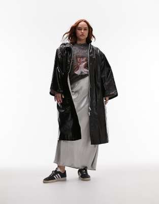 Topshop Curve Hooded Coated Vinyl Coat In Black ModeSens Very well made.