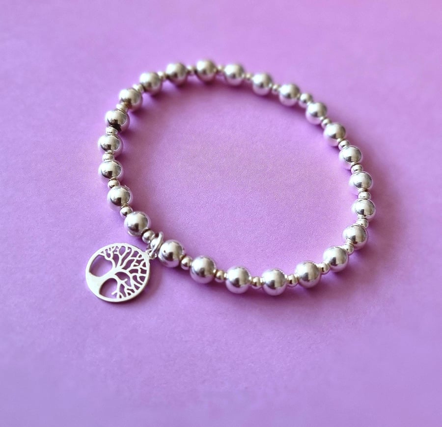 Sterling silver 6mm and 3mm beaded stretch brac Folksy Very well made.