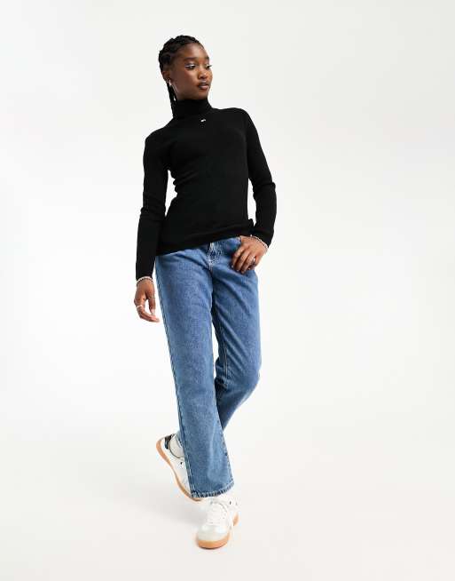 Tommy Jeans essential flag logo turtleneck jumper in black ASOS Very well made.
