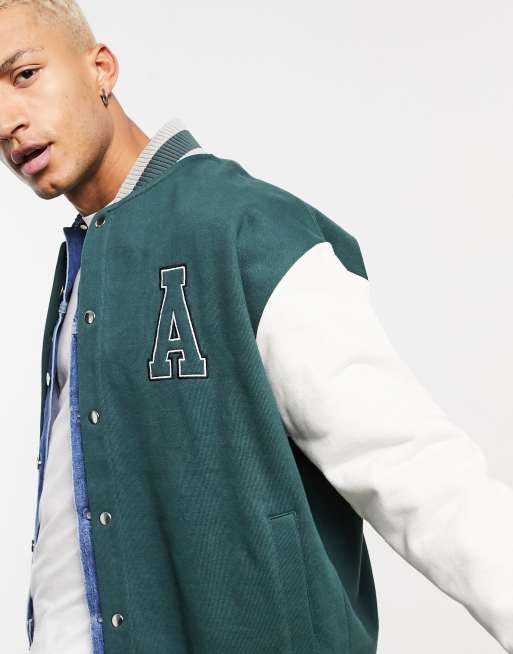 ASOS DESIGN oversized varsity jacket in brown with tipping ASOS Very well made.
