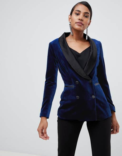 Lavish Alice velvet longline blazer with satin lapels in navy ASOS Very well made.