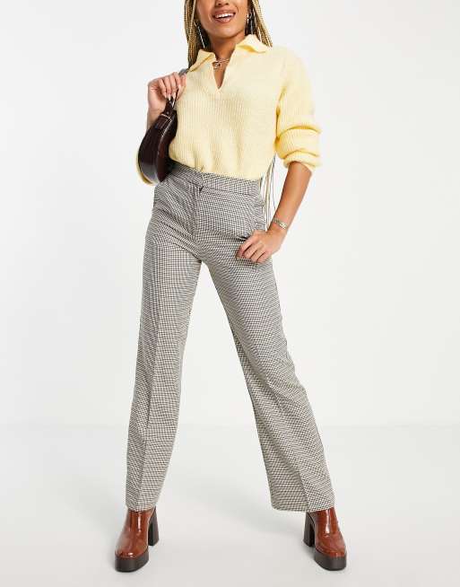 ASOS DESIGN Petite casual flare trousers in pink check Very well made.
