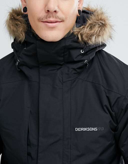 Didriksons 1913 Marc Parka in Black with Faux Fur Collar in Black Very well made.