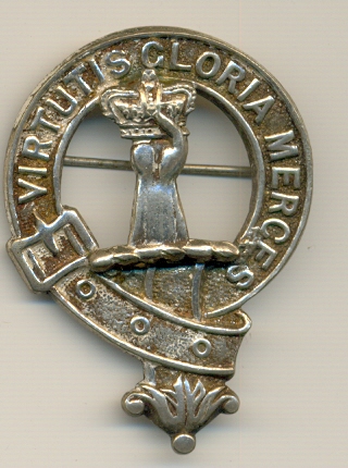 Vintage Scottish Clan Crest Virtutis Gloria Merces brooch Very well made.