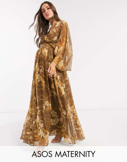 ASOS DESIGN Maternity kimono sleeve maxi dress in oversized floral Very well made.