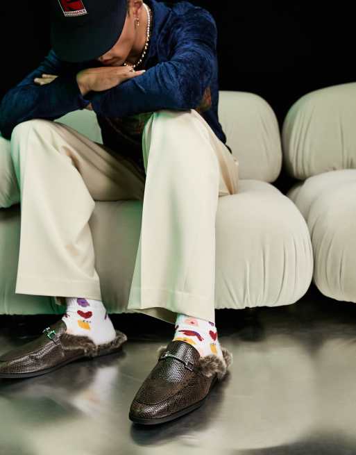 ASOS DESIGN backless mule loafers in brown snake faux leather with Very well made.
