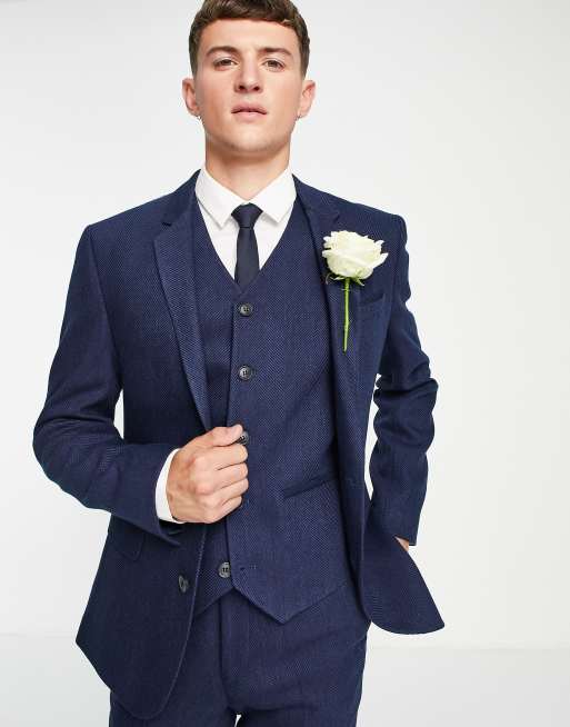 ASOS DESIGN wedding skinny wool mix suit jacket in navy Very well made.