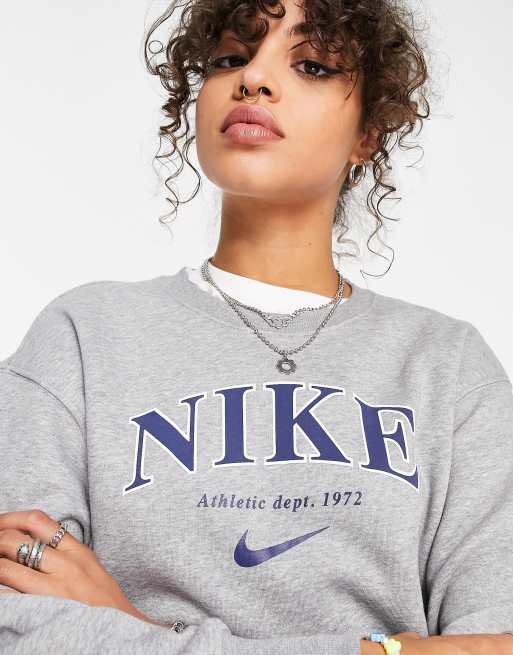 Nike Unisex retro athletics fleece crew sweatshirt in grey heather Very well made.