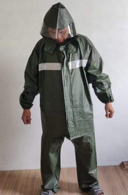 vulcanized reflectorized raincoat fatigue green black kapote Very well made.