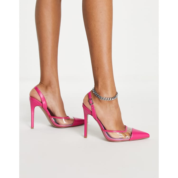 ASOS DESIGN Peridot slingback high heeled shoes in clear and pink Very well made.
