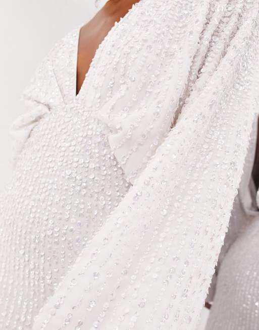 ASOS Ciara Sequin Kimono Sleeve Wedding Dress In in White Lyst Very well made.