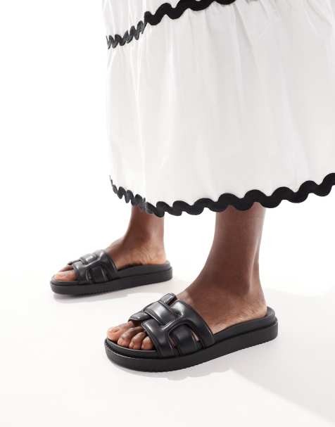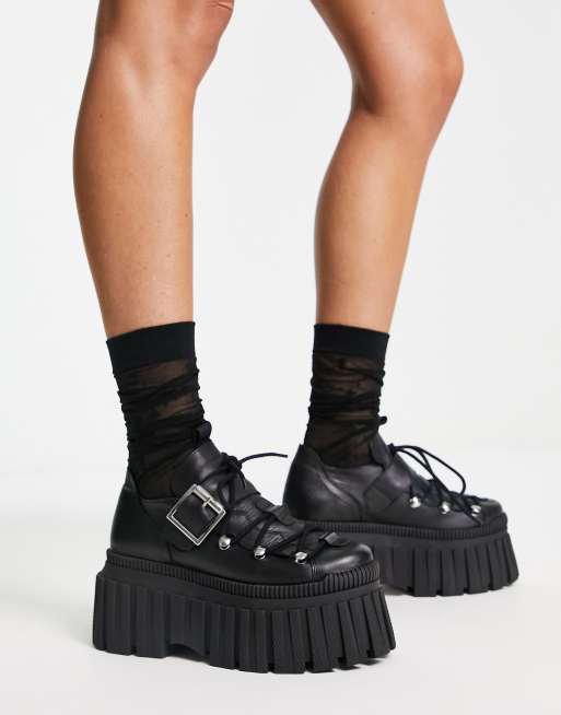 ASOS DESIGN Meg premium leather chunky flat shoes in black ASOS Very well made.
