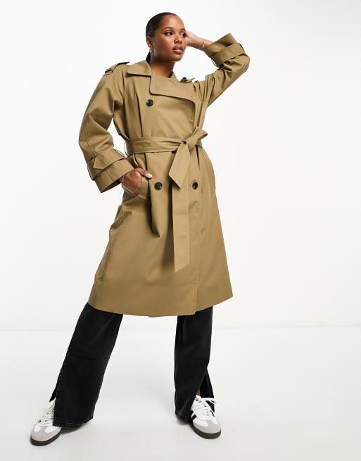 ASOS DESIGN Petite longline trench coat in olive Very well made.