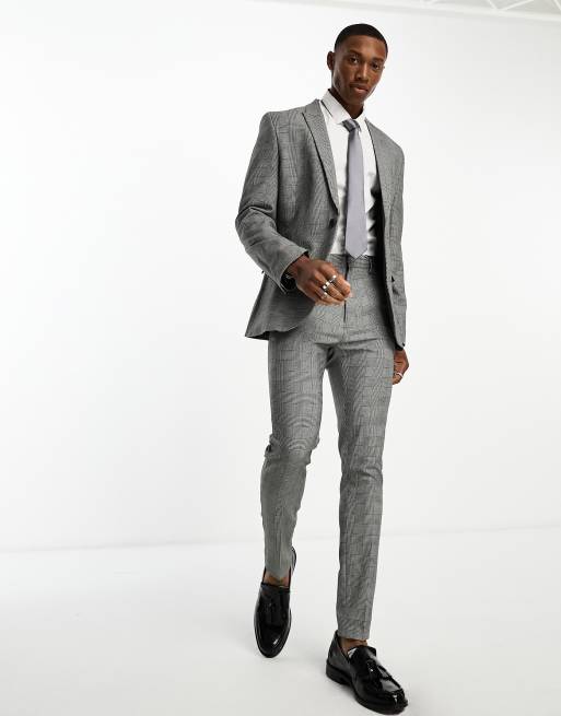 Men s Suits 3 Piece Black Grey Check Suits ASOS Very well made.