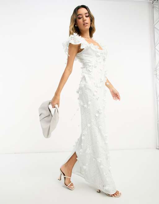 ASOS DESIGN Vestito midi in pizzo azzurro con maniche a sbuffo cut out e decorazione floreale Very well made.
