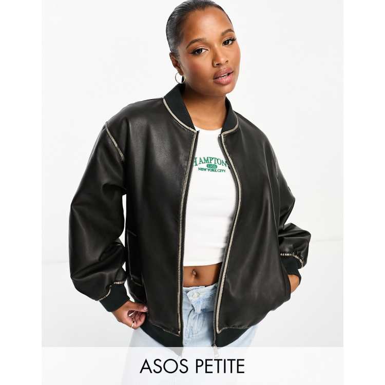 ASOS DESIGN Petite washed faux leather bomber jacket in black ASOS Very well made.