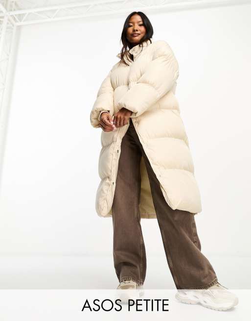 ASOS DESIGN Petite longline puffer coat in cream Very well made.