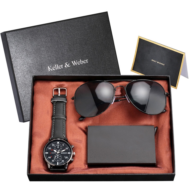 Personality Men s Watch Bracelets Gift Set Luxury Leather Quartz Date Watches with Box for Boyfriend Gifts Idea for Father s Day Very well made.