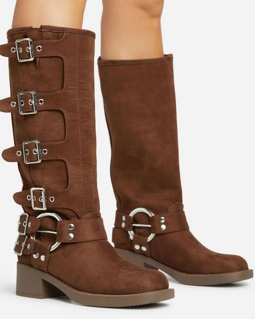 Cassandra Flare Knit Detail Chunky Sole Knee High Long Biker Boot Very well made.