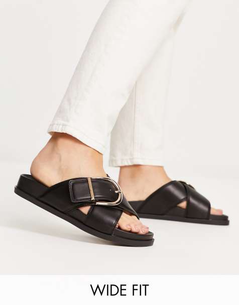 Women Wide Fit Chain Decor Double Strap Slide Sandals Glamorous Very well made.