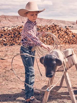 Boy s Wrangler Retro Western Snap Plaid Shirt with Front Sawtooth Very well made.