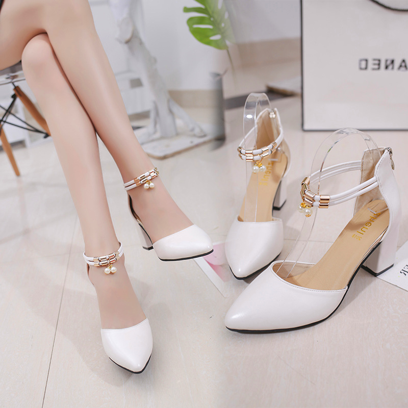 Satin Almond Toe Block Heel with Pearls Ankle Strap Wedding Very well made.