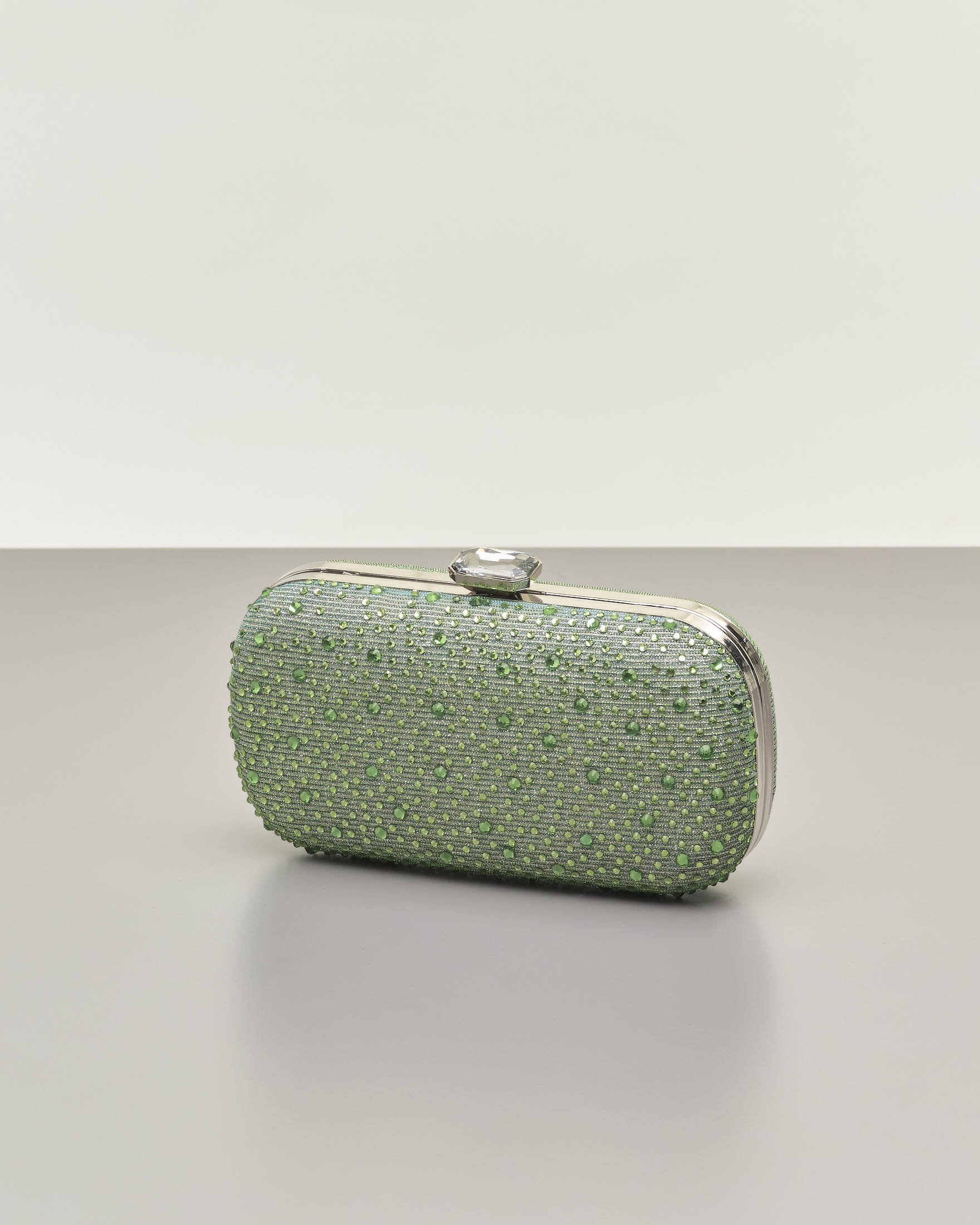 Clutch rigida verde acqua a forma ovale in lurex con strass tono Very well made.