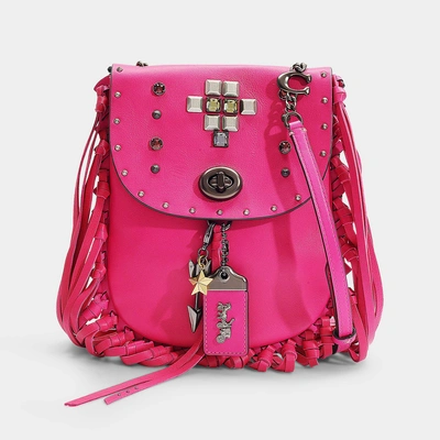 Coach Textured Pyramid Rivets Fringe Saddle Bag In Fuchsia Very well made.