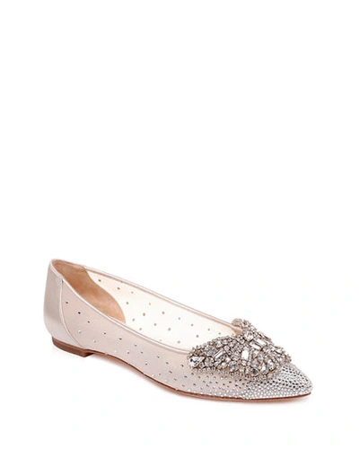 Women s Quinn Crystal Embellished Pointed Toe Flats In Ivory Satin Mesh Very well made.