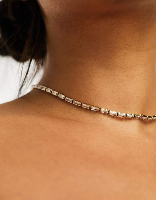 Baguette Diamond Gold Choker Necklace Gold Ebru Jewelry Wolf Very well made.