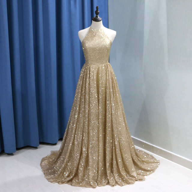Sparkly Gold Evening Gown Sequin A Line Prom Dresses 2018 Long Very well made.