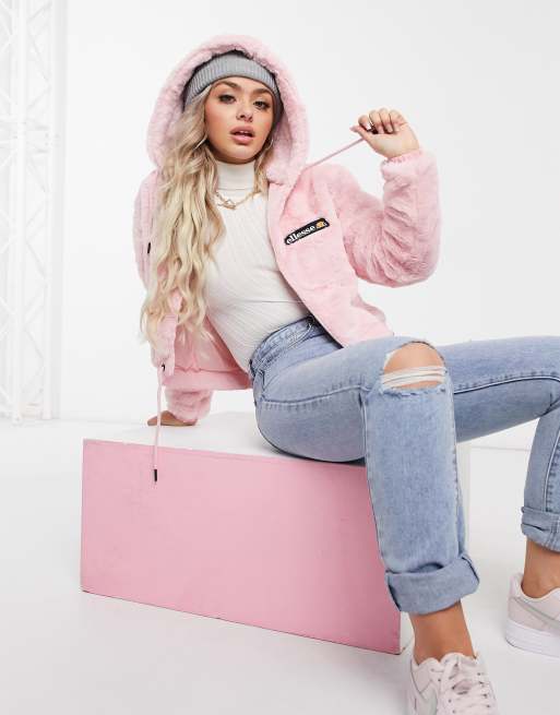 ellesse faux fur cropped hooded jacket in pink ASOS Very well made.