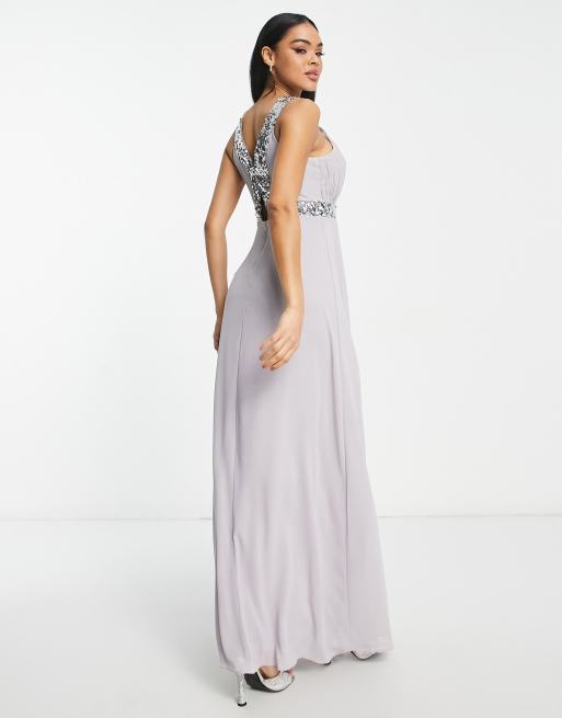 TFNC high neck embellished chiffon maxi dress in gray ASOS Very well made.