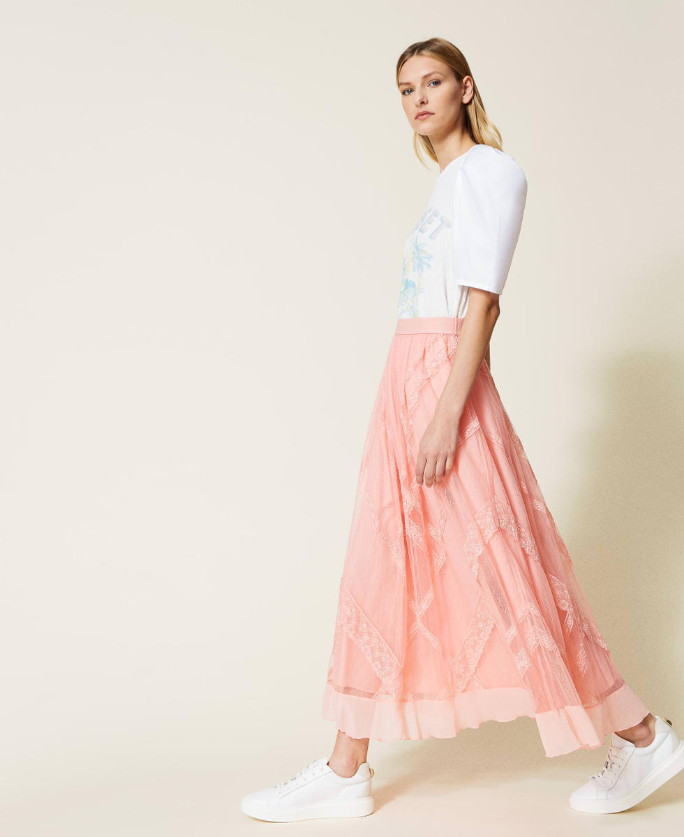 Gonna lunga in tulle point d esprit e pizzo Donna Rosa TWINSET Very well made.