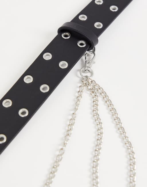 ASOS DESIGN wide waist and hip eyelet belt with chain detail in Very well made.