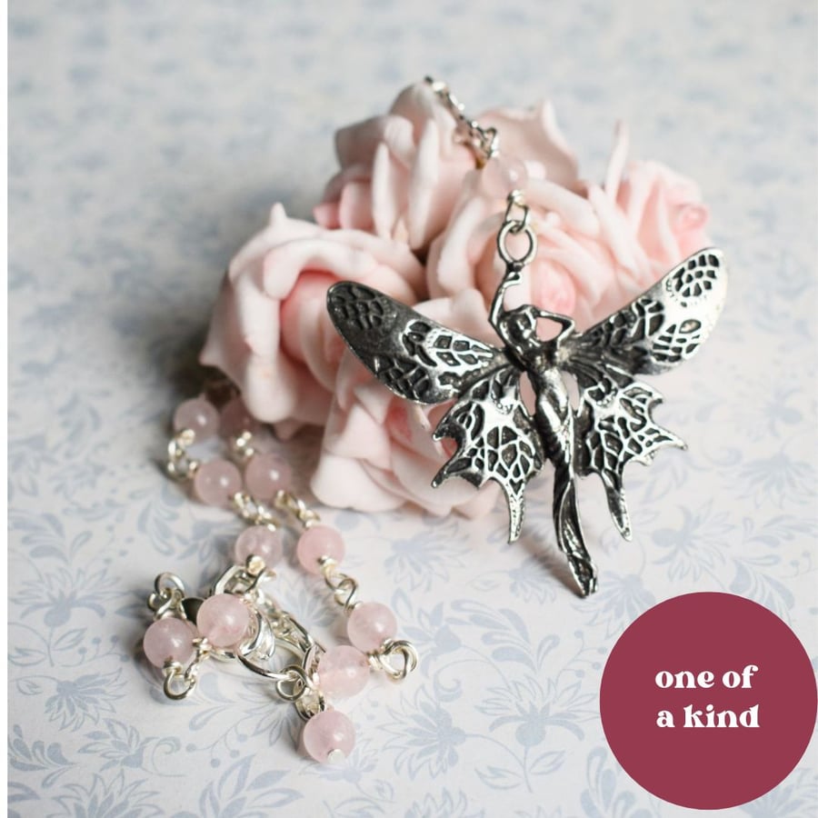 Rose Quartz and Pewter Fairy Pendant Necklace Folksy Very well made.