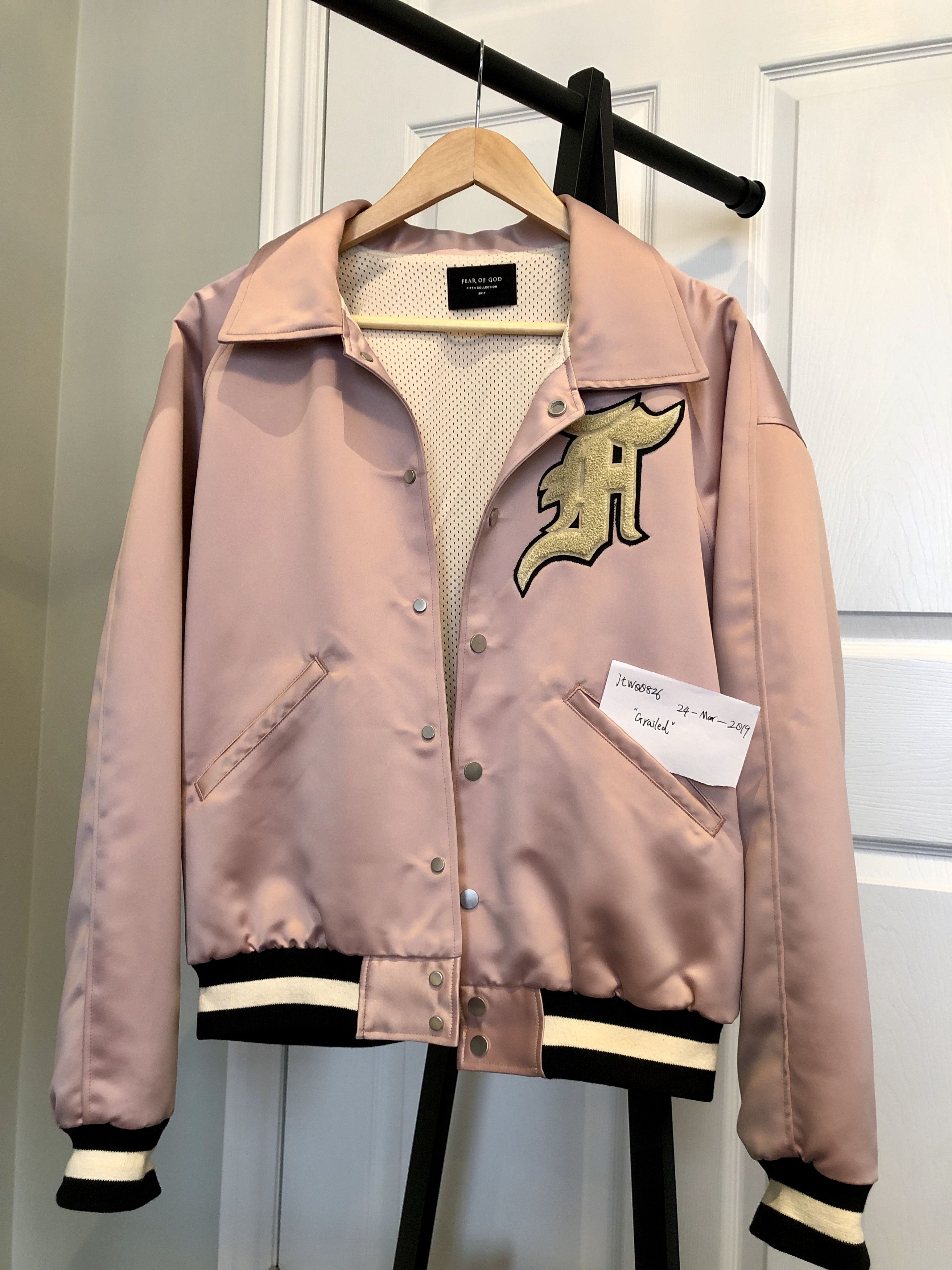 Fear of God APPLIQU D SATIN BOMBER JACKET Pink Grailed Very well made.