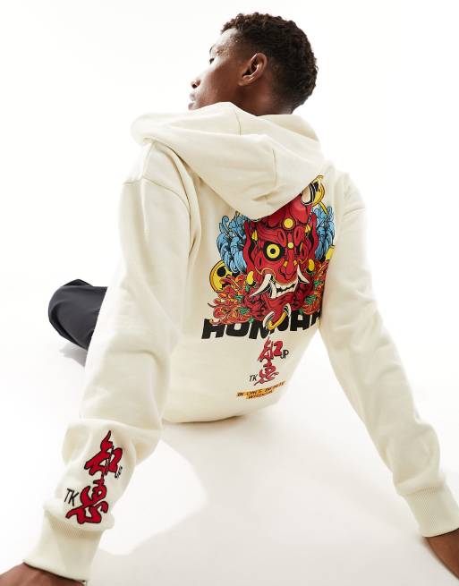 ASOS DESIGN Felpa con cappuccio oversize beige con stampa di Very well made.