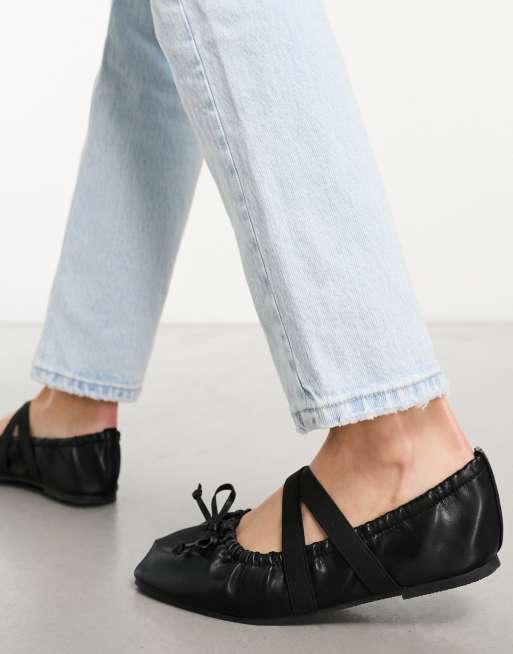 ASOS DESIGN Wide Fit Los Angeles ruched ballet with elastic strap in matte black Very well made.