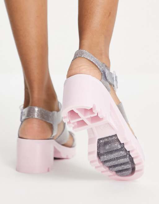 Juju jelly heeled shoes in clear glitter with pink contrast sole Very well made.