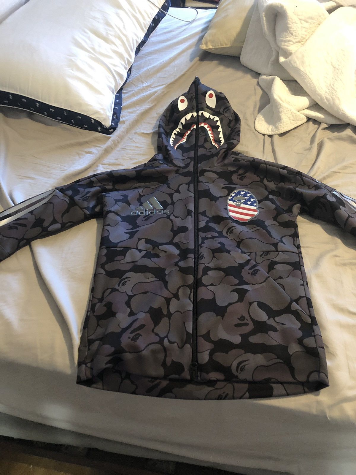 Adidas x Bape Superbowl SB Shark Green Camo Hoodie S M Small Very well made.