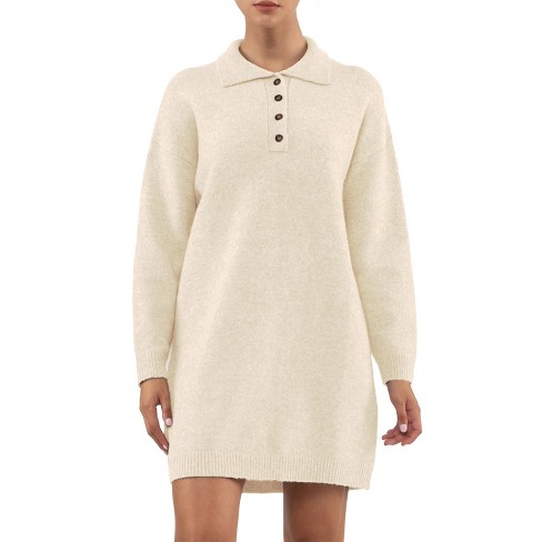 August Sky Women s Collared Henley Lightweight Sweater Mini Dress Very well made.