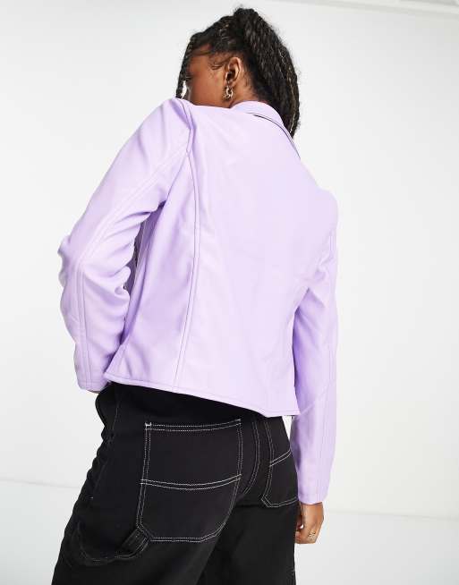 ASOS DESIGN ultimate faux leather biker jacket in lilac Very well made.