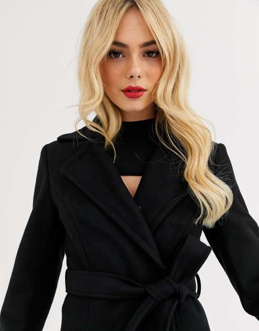 LIPSY BLACK FIT Flare Belted Wool Blend Coat Size 10 6.00 Very well made.